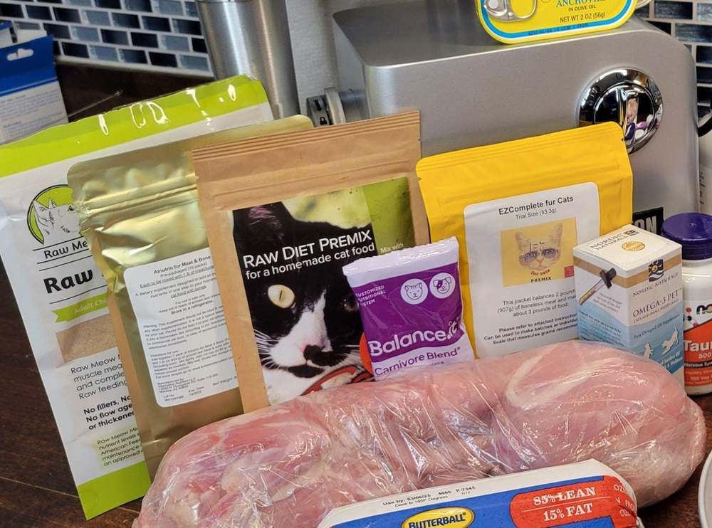 We recommend homemade cat food premix supplements, also known as meal completers. They’re formulated to fill in the nutritional gaps when mixed with fresh meat. But they’re not perfect. You still have to do some research and consult your veterinarian to find the product that best suits your cat’s needs and your homemade diet plan.