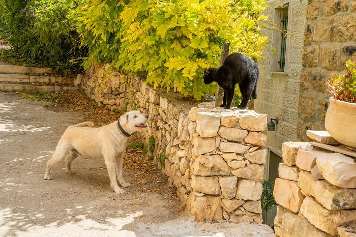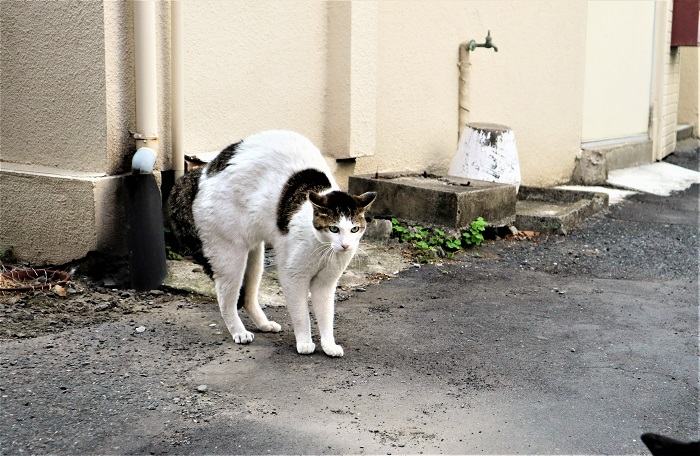 Your cat may display distance-increasing signals when neighboring cats or dogs are nearby. Their positioning sends the message, “Don’t come any closer.” Usually, this behavior arises when your cat feels that they, their territory, or resources are in danger.